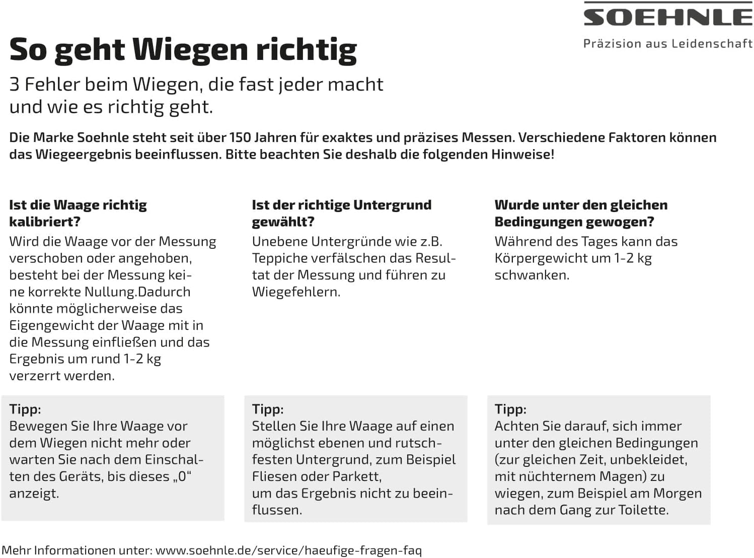 - Extra-large display - The Soehnle scale has a large, illuminated LCD display (digit height 4.5 cm), for good readability even in difficult lighting conditions