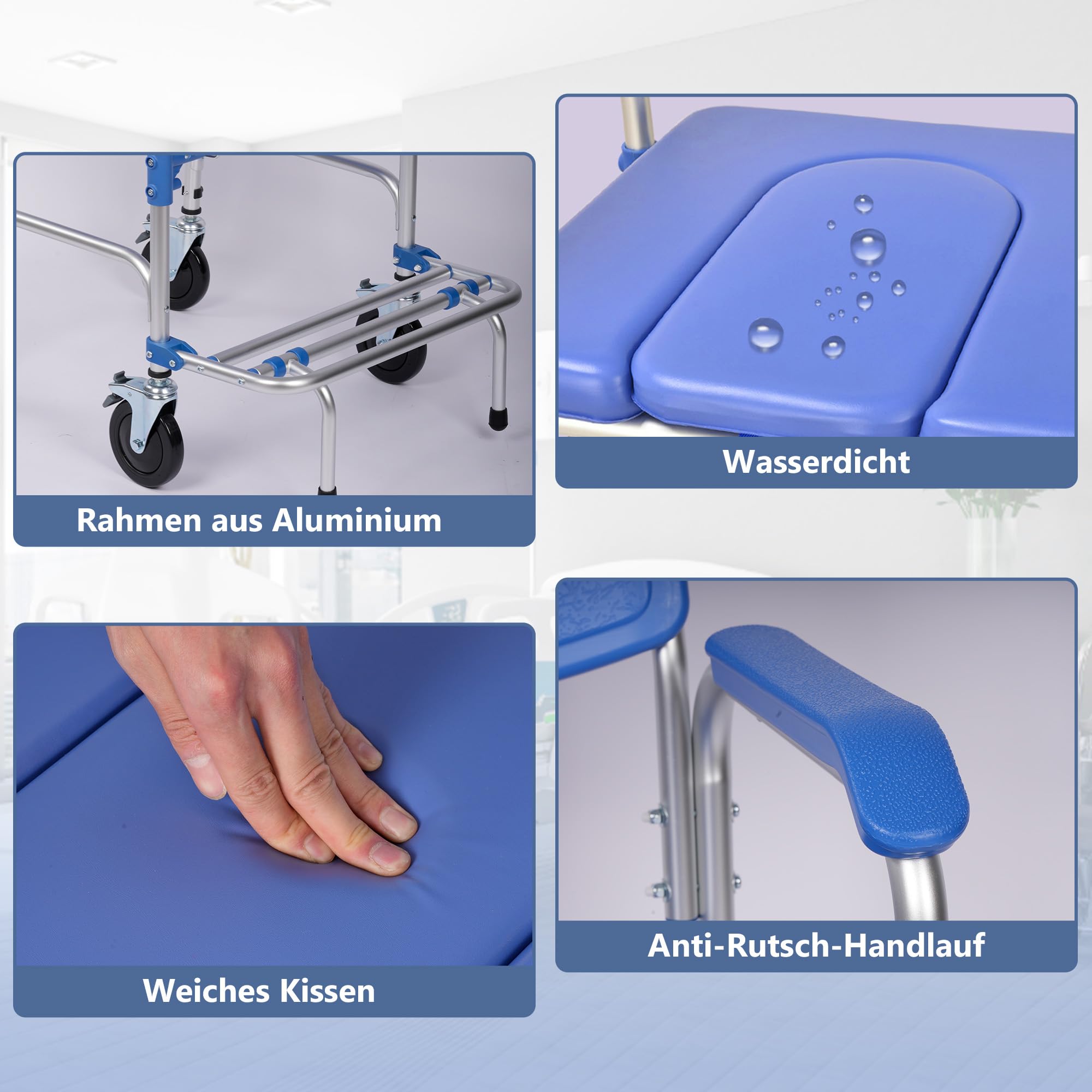 Suuiwau toilet chairs, toilet chair with wheels, shower chair for seniors, mobile toilet chair for sick, elderly, disabled and pregnant women, load capacity up to 150 kg