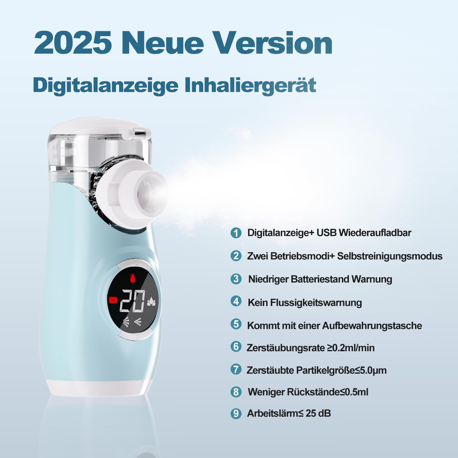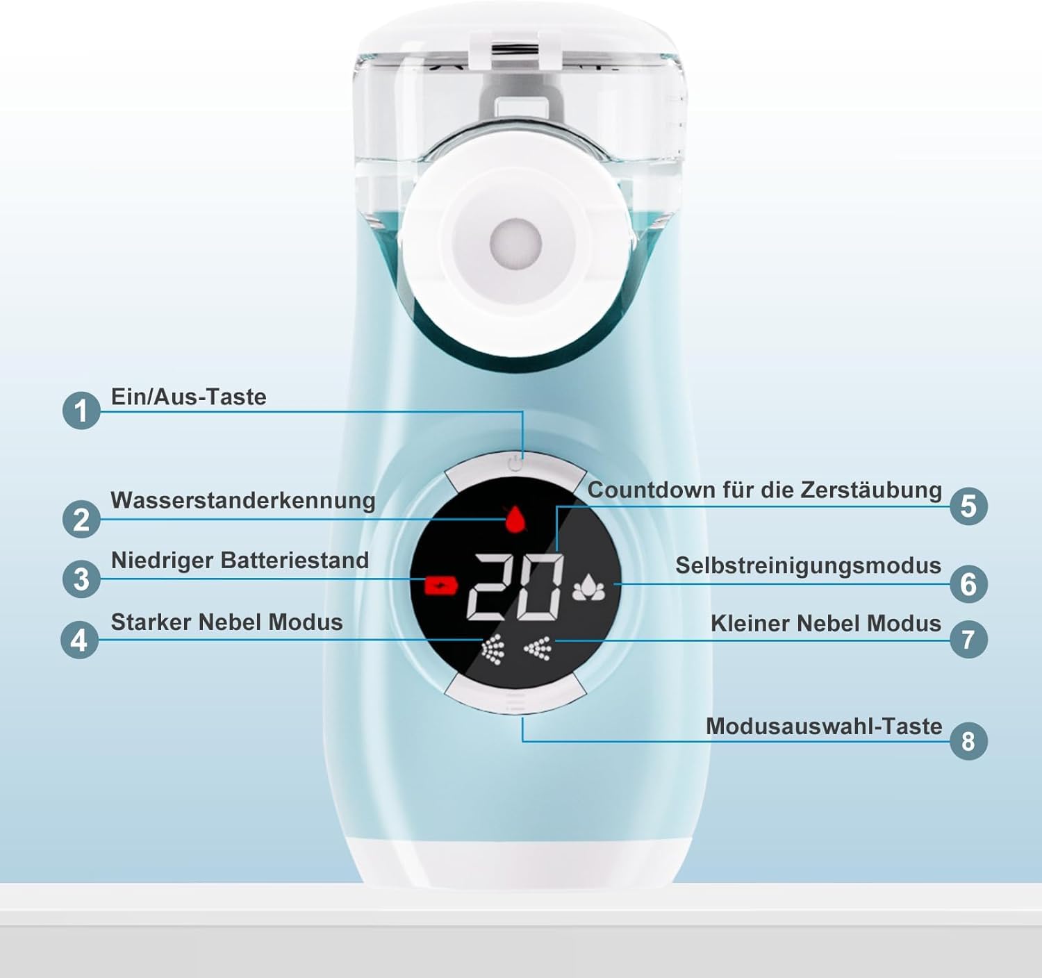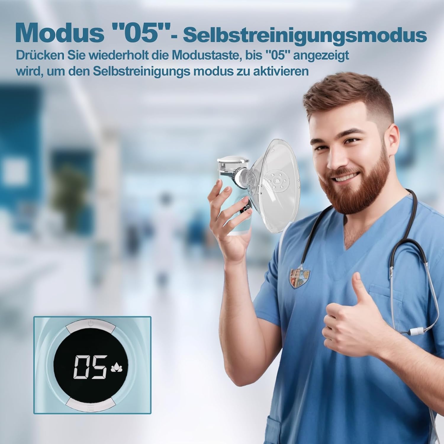 Swetfela Nebulizer for Adults and Children with LED Screen, Self-Cleaning Mode, 3 Timed Spray Modes, with 2 Masks and Mouthpiece, Portable USB Rechargeable Nebulizer