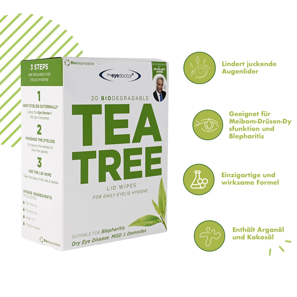 - GENTLE CLEANSING RELIEF: Biodegradable tea tree oil eyelid wipes are ideal for soothing sore or irritated eyes and are suitable for use in cases of dry eye, blepharitis, MGD and demodex.