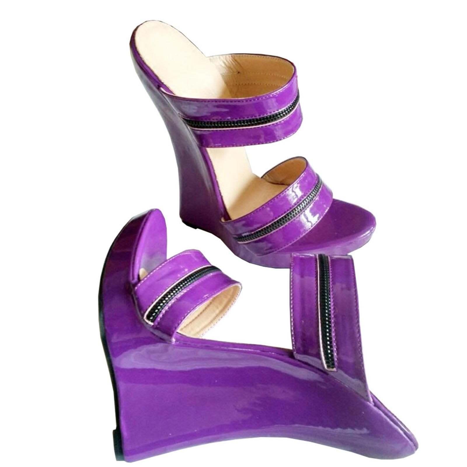 TIKENBST High Heels Women High Wedge Heels Leather Platform Ankle Strap Sandals Summer Fashion,Purple-43