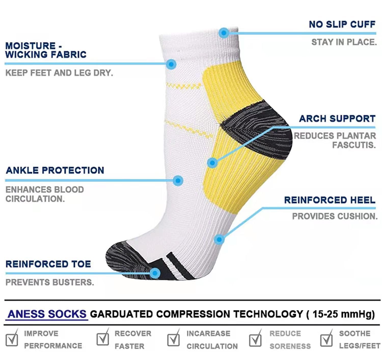 Tlynsnil Compression Socks for Men and Women 8 Pairs, Compression Socks, Sports Socks, Plantar Fasciitis, Arch Support, Running, Gym, Anti-Fatigue