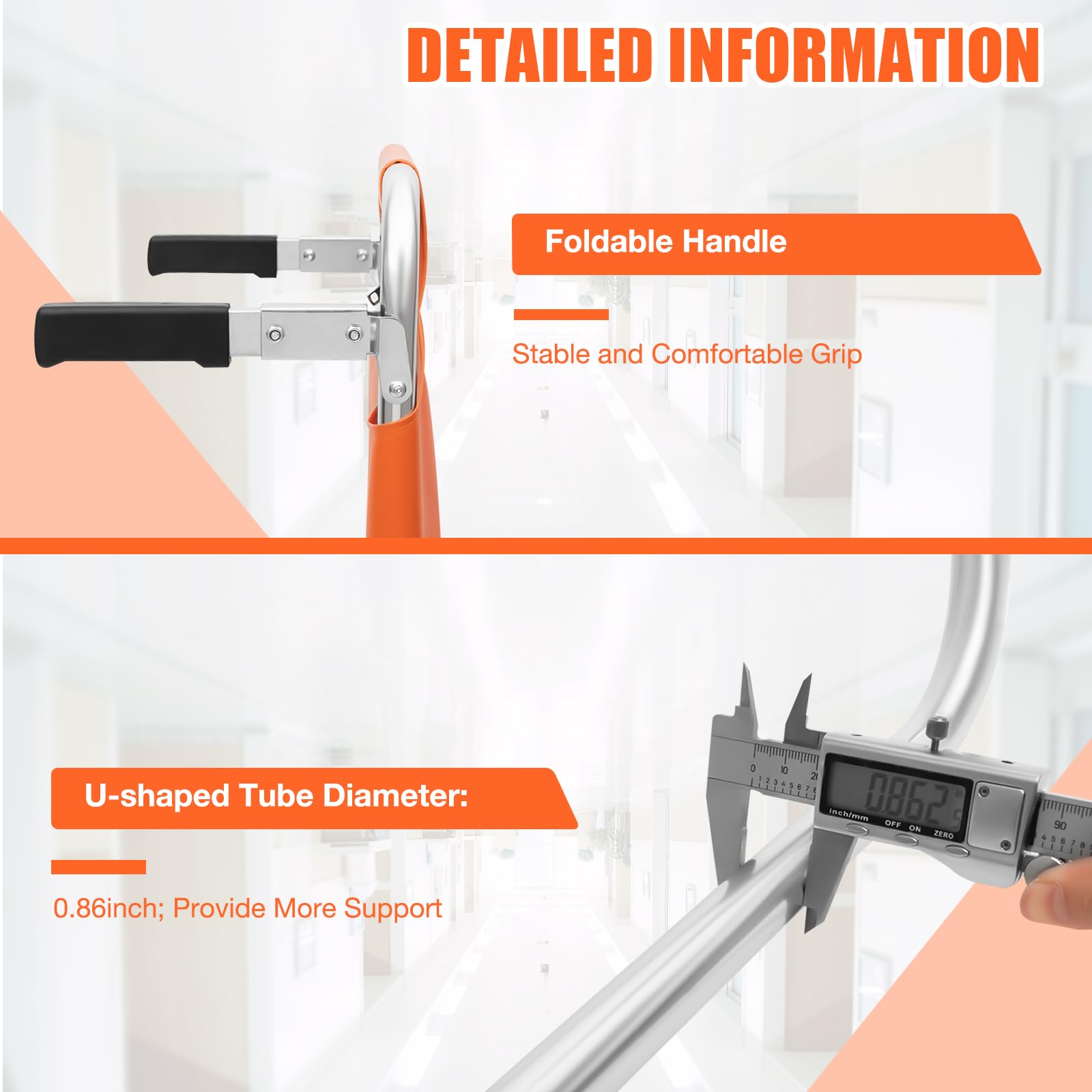 - Foldable handles: The two ergonomic handles on the back of the stair chair are wrapped in plastic and can be easily folded to achieve a stable and comfortable grip.