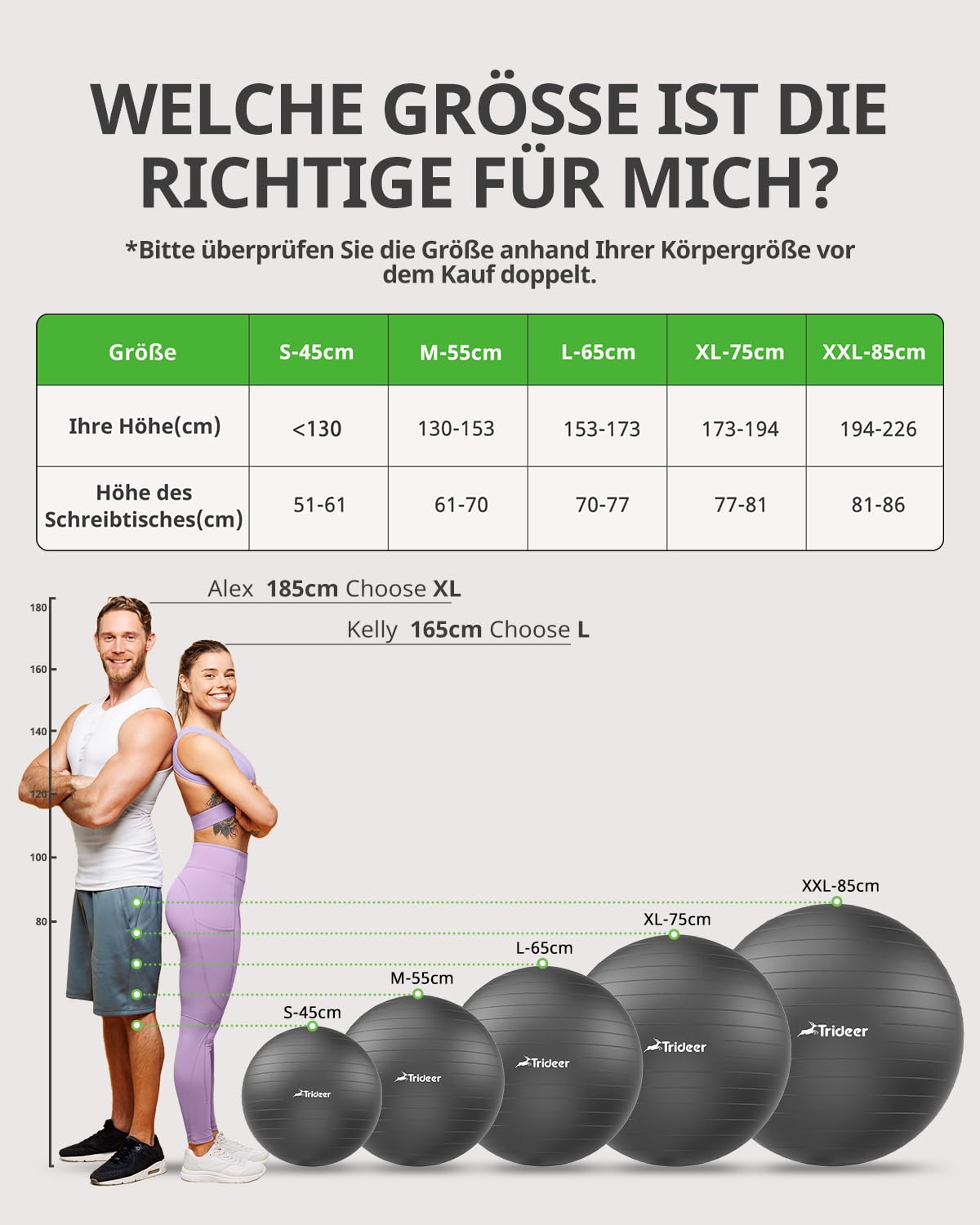 Trideer Thick Exercise Ball Pregnancy, Pezzi Ball, Anti-Burst Pilates Ball, 45-85 cm Seat Ball Office for Balance, Yoga as Small Fitness Equipment and Balance Chair in the Gym-Home Office