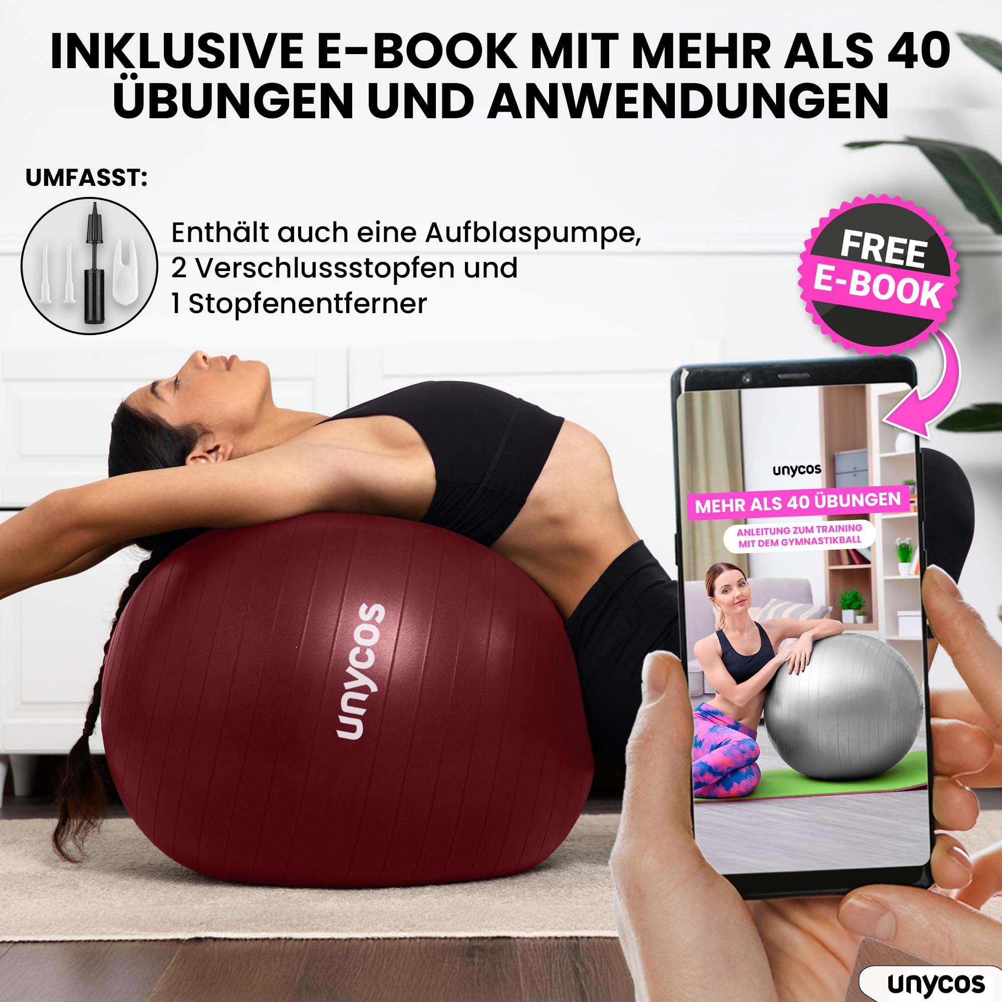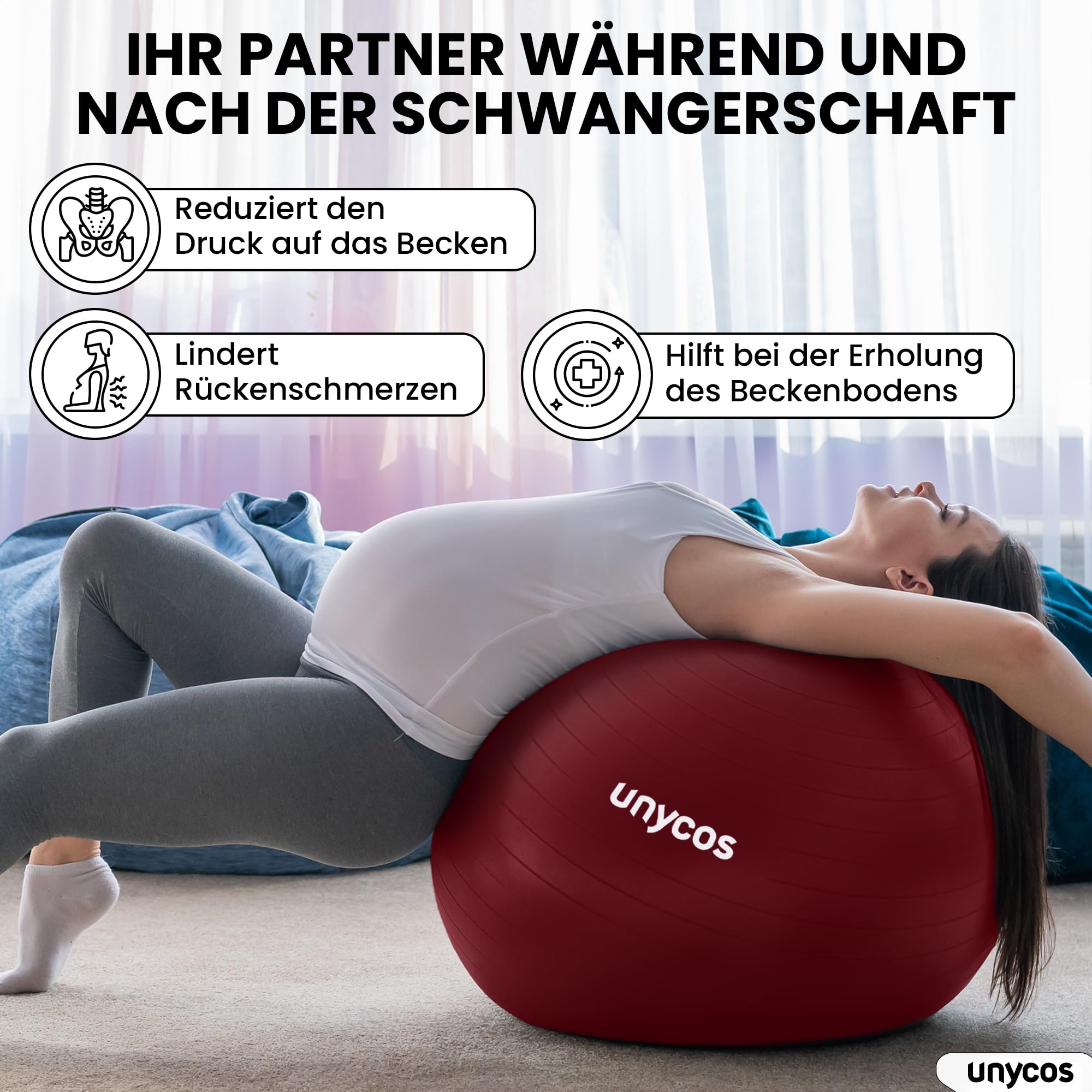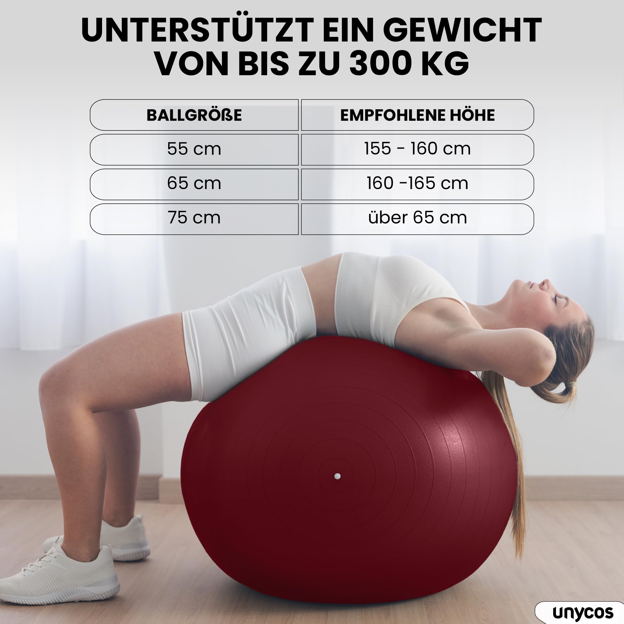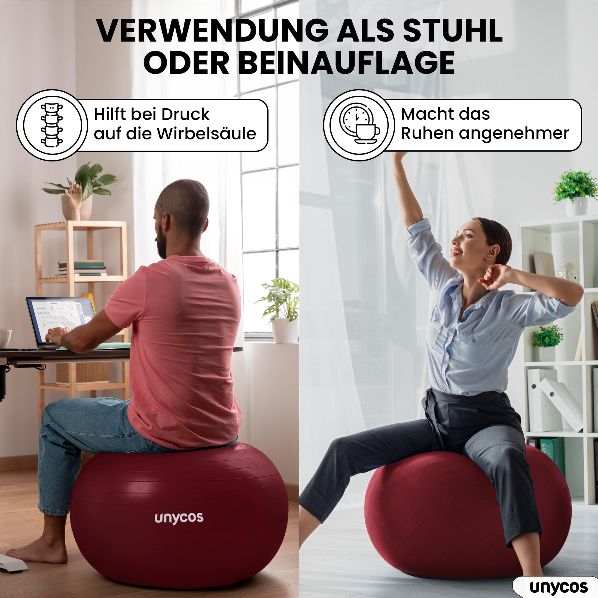 unycos - Exercise Ball 75 cm Seat Ball Training Ball for Yoga, Fitness, Medicine Ball, Balance Ball, Core Training Strength, Pilates Ball | Includes Pump, BPA-Free, Anti-Burst (Dark Pink with Logo)