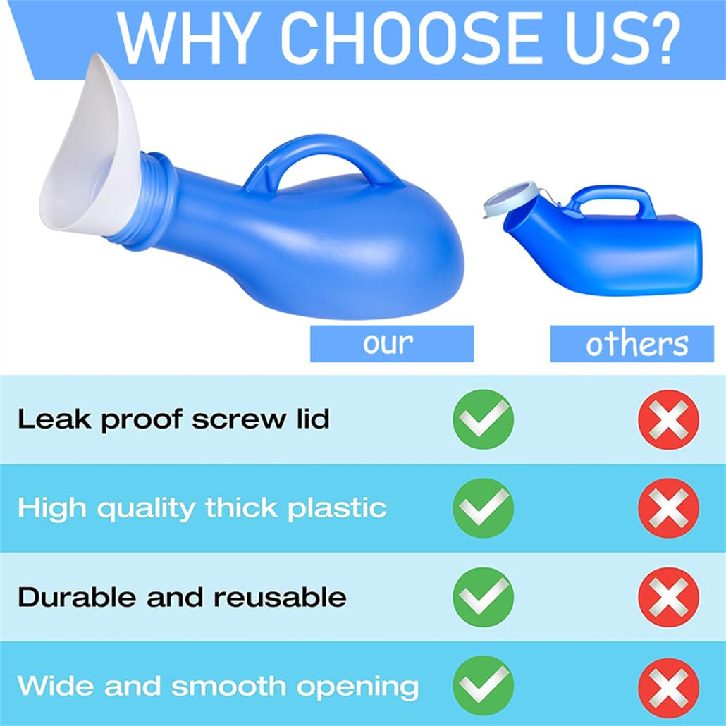 - 1 Liter Capacity: Our unisex urine bottle with lid can hold up to 1000 ml, which can meet your usage needs.