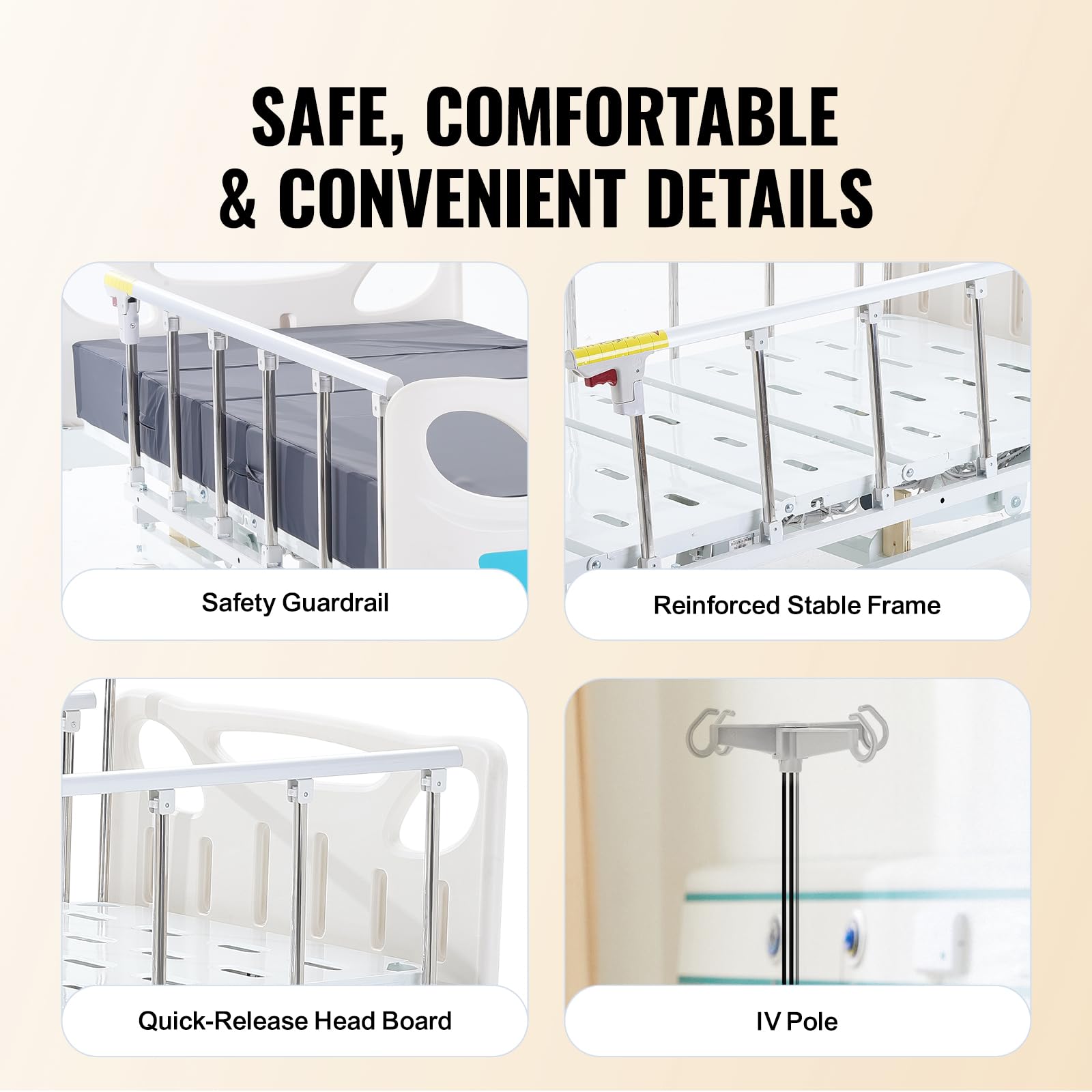 Our VEVOR electric hospital intensive care bed features a high-quality, waterproof foam mattress that provides exceptional comfort and durability, ensuring a restful experience whether in the hospital or in home care.