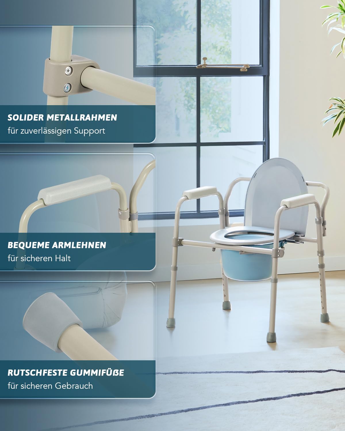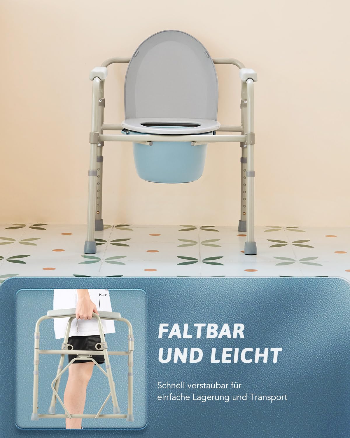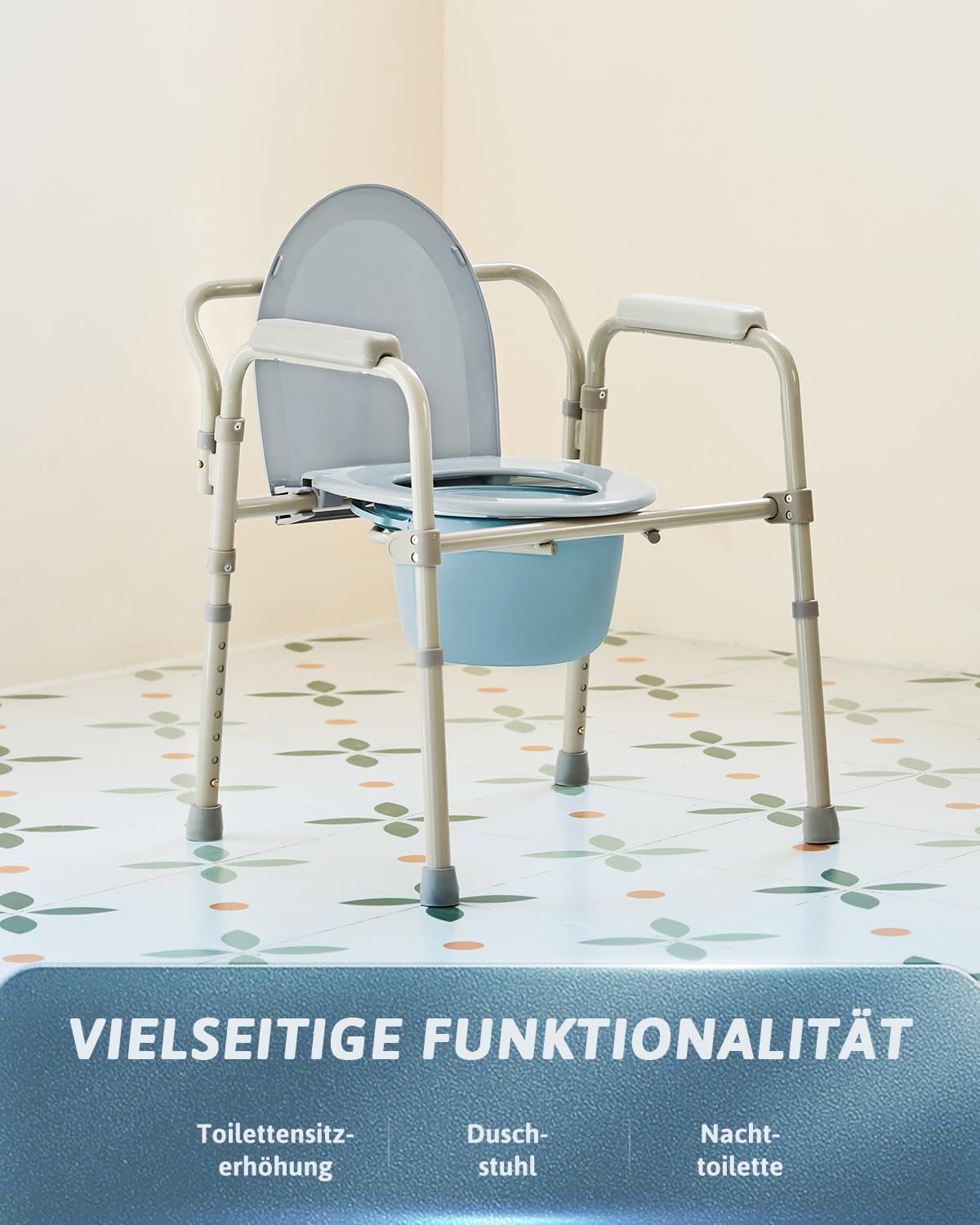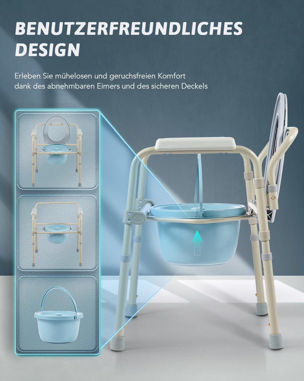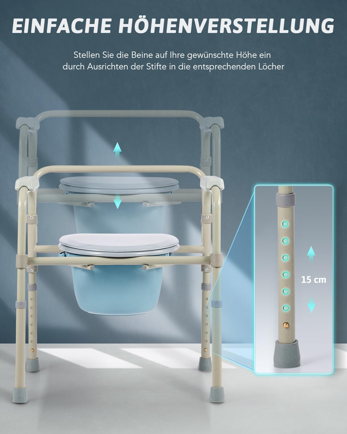 VONOYA Commode Chair for Seniors 135kg Foldable Commode Chair with Armrest Hygienic Commode Chair Toilet Aid Toilet Chair Height Adjustable Chair for Toilet with Removable Bucket