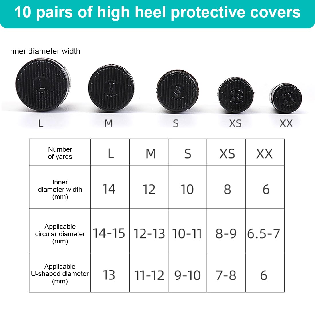 - 🎋Various sizes: XX code, suitable for round heels 6.5-7mm, U-shaped heels 6mm; XS code suitable for round heels 8-9mm, U-shaped heels 7-8mm.