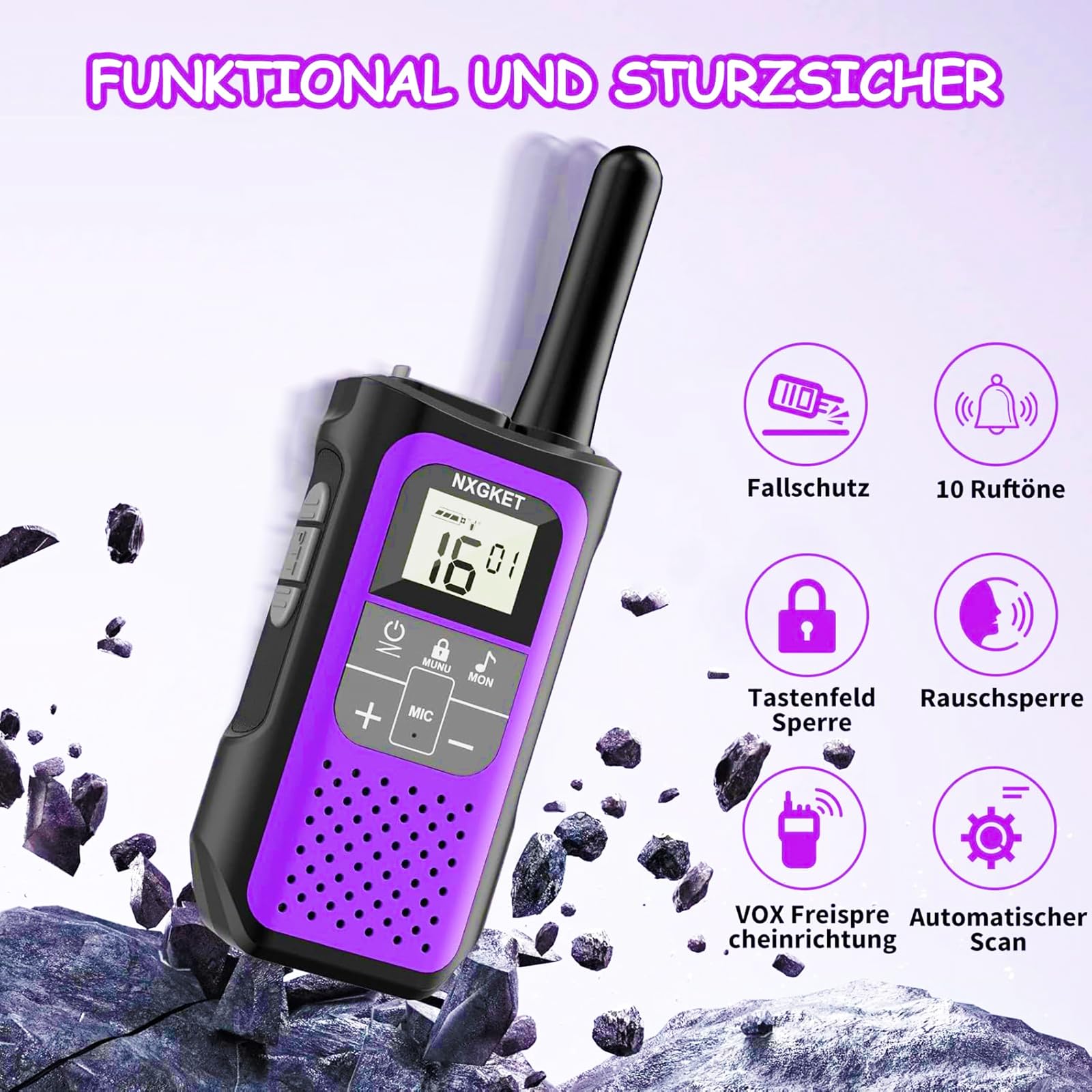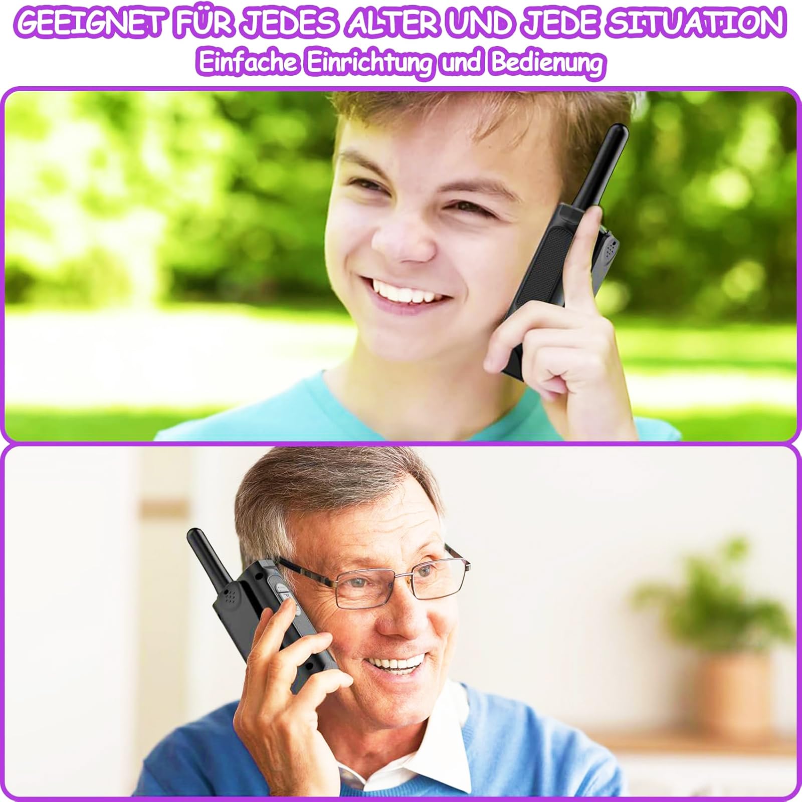 - LONG-RANGE WALKIE-TALKIES: Our walkie-talkies for kids and adults are equipped with high-quality antennas with excellent penetration and a long reception range. The communication range can reach 1.5 kilometers in urban areas and 5 kilometers in open areas. The actual range depends on the current obstacle environment.