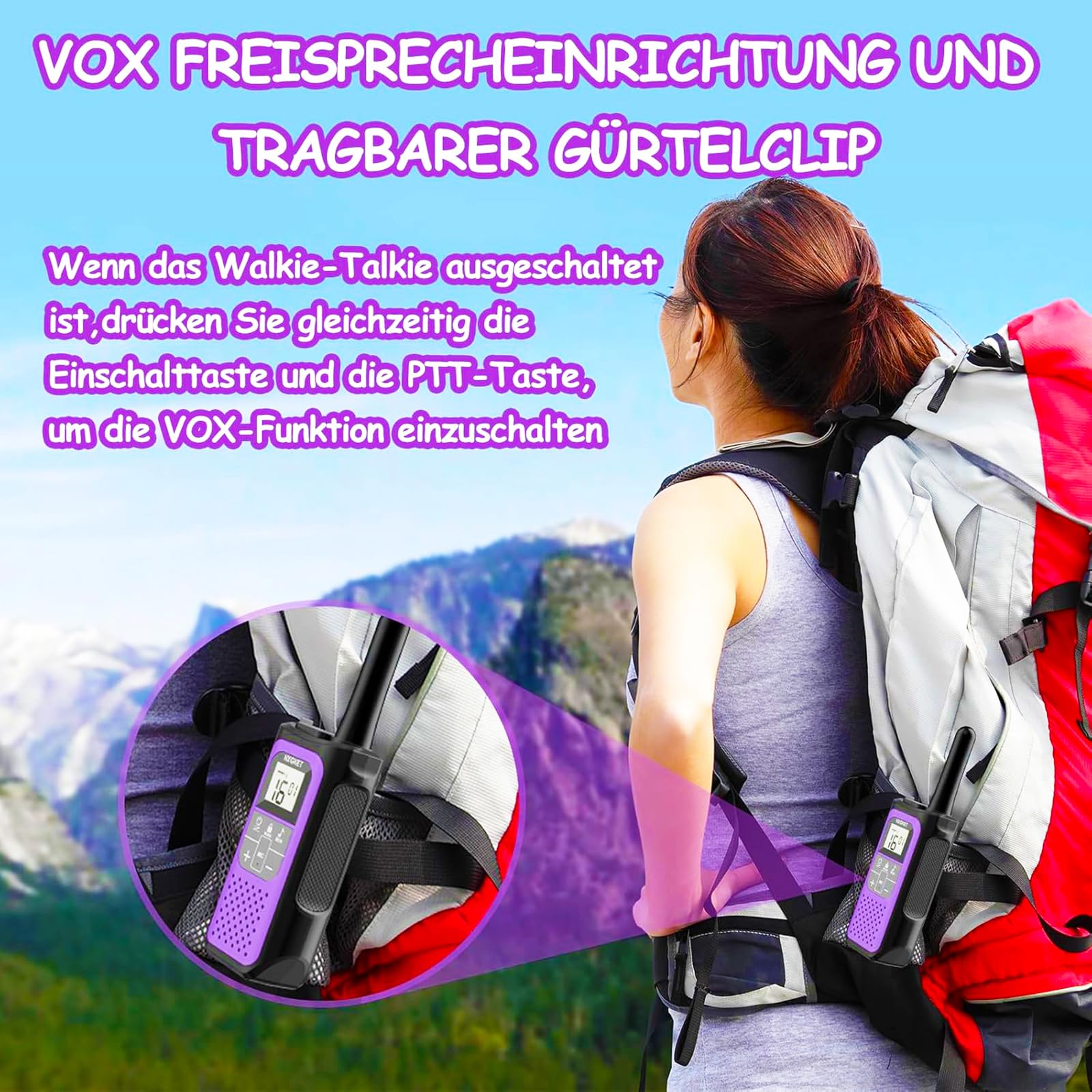 - IDEAL GIFT FOR ALL AGES: This 3-pack walkie-talkie set features brighter, trendier colors, making it suitable for all ages and many occasions. It's a great gift for friends and family on birthdays, Mother's Day, Father's Day, Thanksgiving, Christmas, etc., to reduce screen time and facilitate pleasant communication. Supports long-distance communication, perfect for hiking, biking, camping, road trips, cruising, skiing, business, and the workplace.