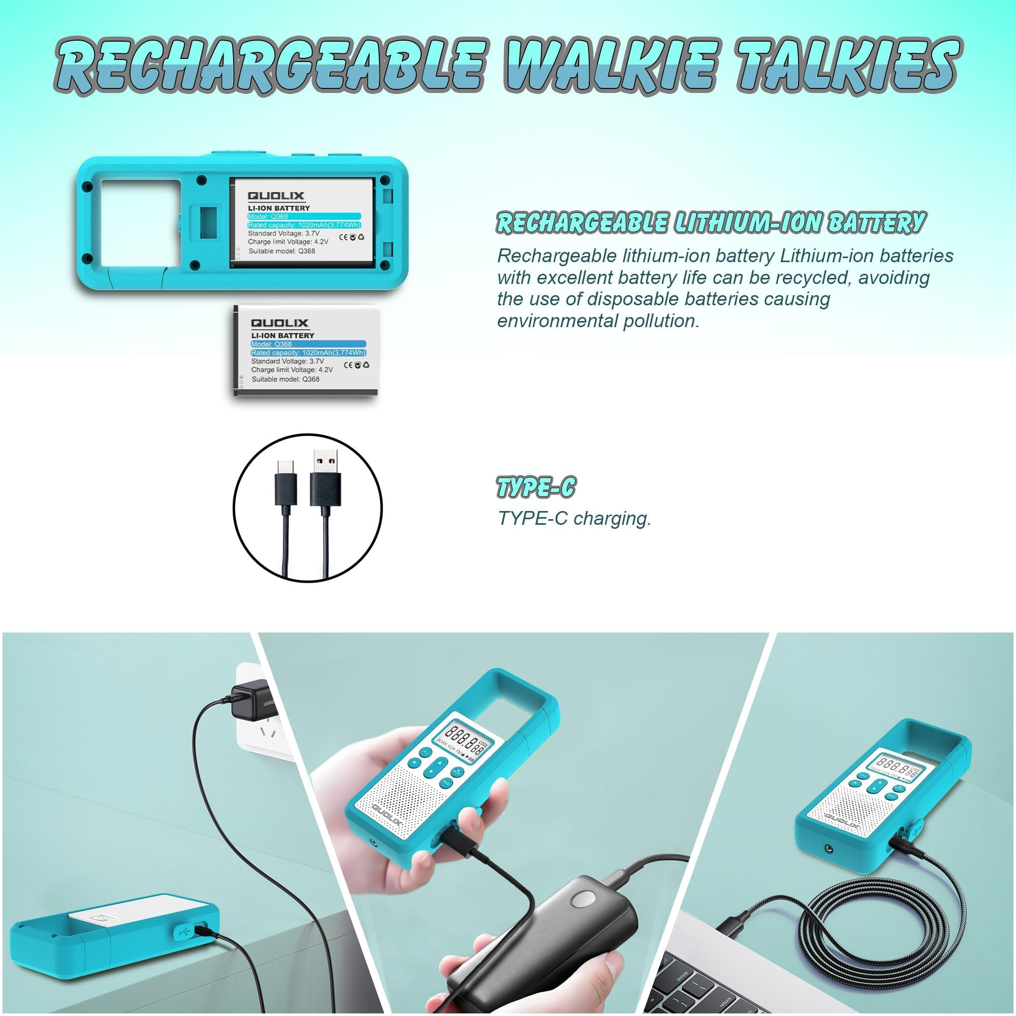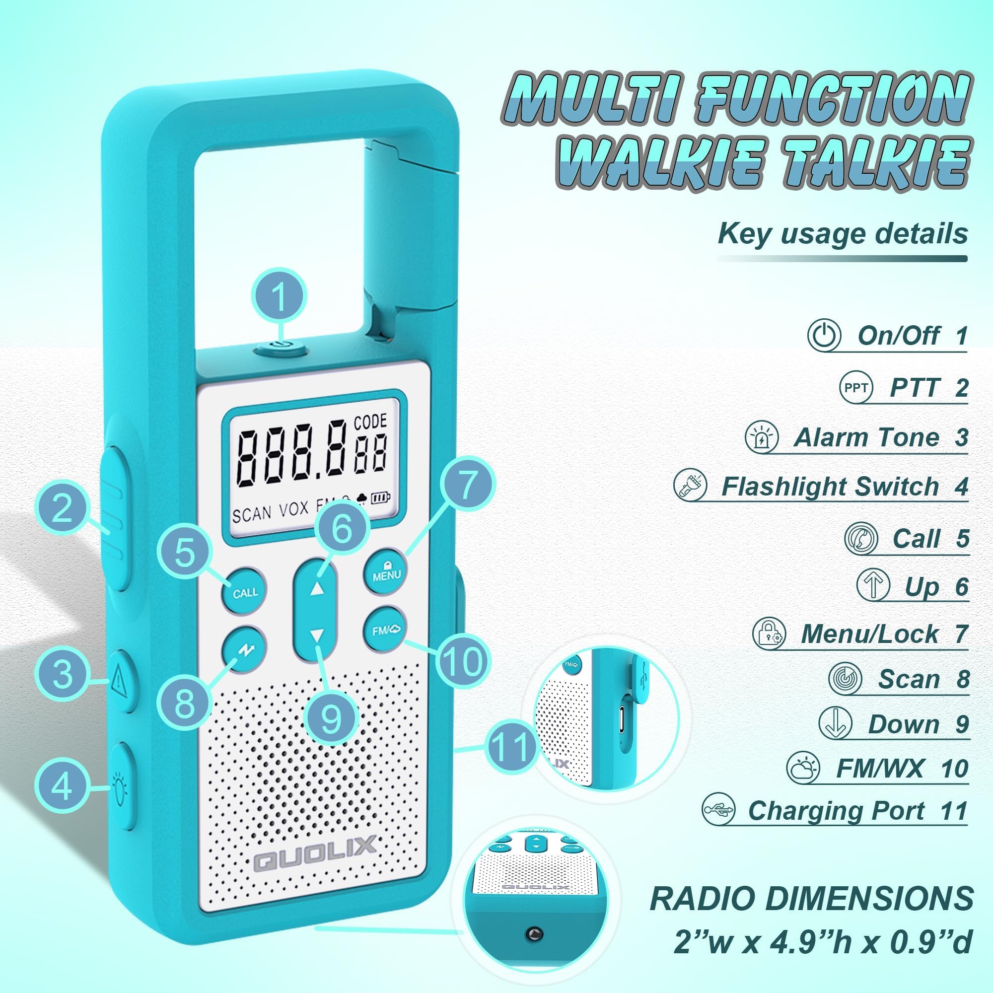 Brand: QUOLIX Color: Red+Green+Blue+Orange Characteristics: Quolix children's rechargeable walkie talkies with 8 channels and 99 codes, with auto channel scan... Read more