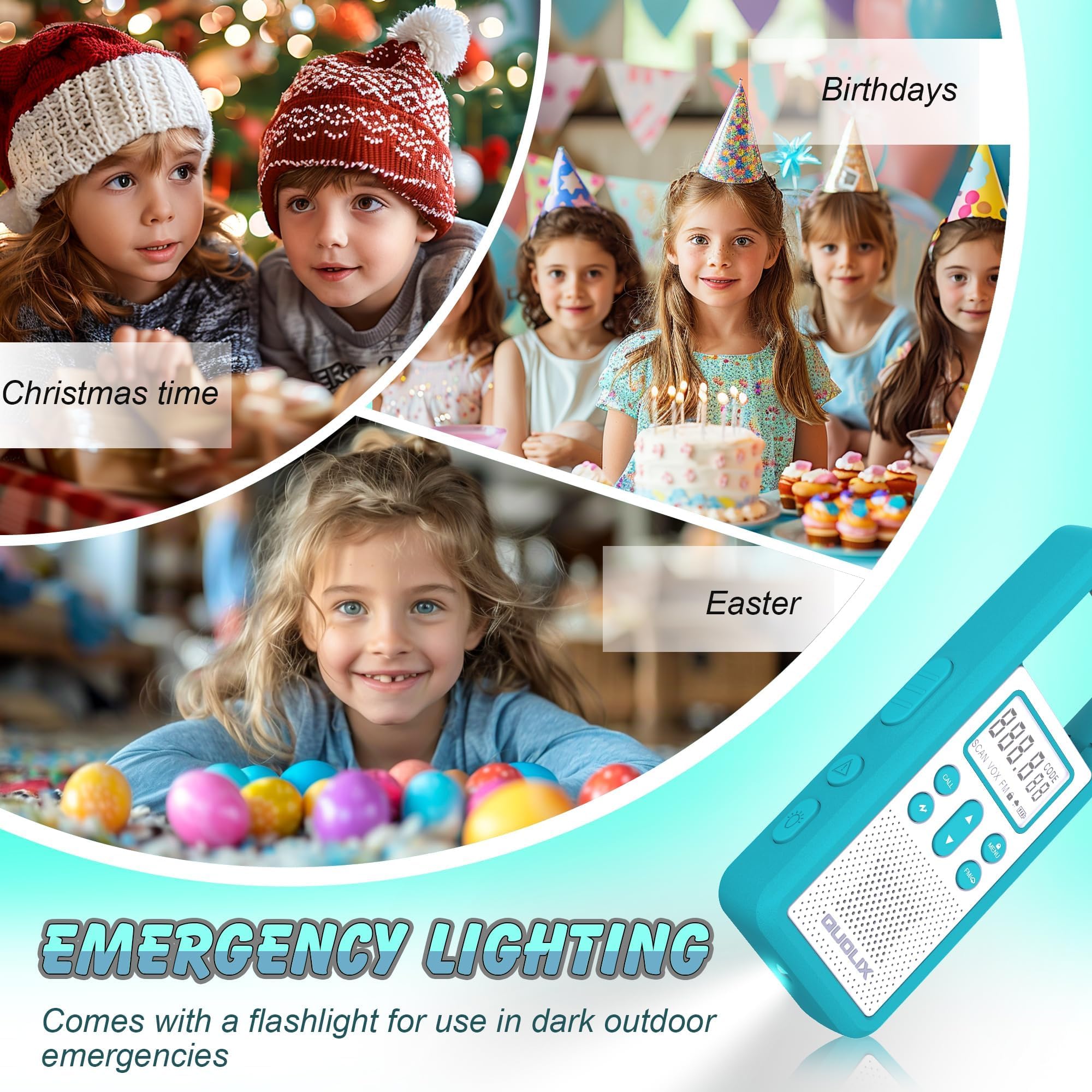 Walkie Talkie Rechargeable Set of 4, Long Range PMR Walkie Talkie, FM Radio with SOS Alarm & LED Flashlight, Walkie Talkies for Adults with VOX, Suitable for Outdoor Adventures, Cycling, Travel