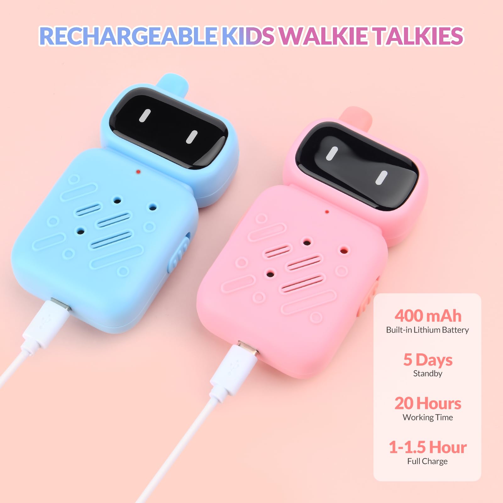 - 【Mini Size and Lightweight】This walkie talkie for kids features a comfortable grip and a child-friendly design, making it ideal for children. These kids' walkie talkies also come with two stylish hanging cords so your child can hang them around their neck or attach them to their backpack. They're the perfect camping toy for kids.