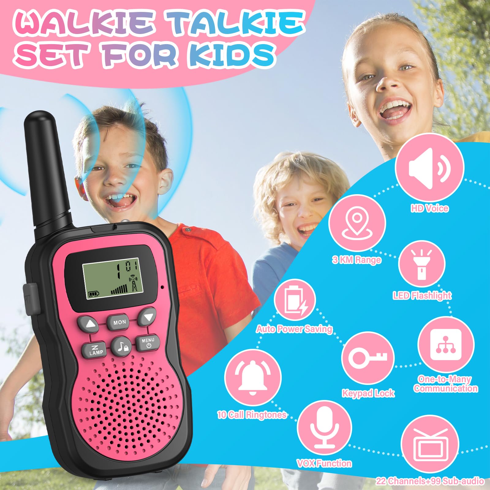 Walkie Talkie Kids Set of 3, Apkezel Walky Talky with 1000mAh Rechargeable Battery, Long Range 3km Walkie Talkie Radio Set with VOX Flashlight for Outdoors, Camping, Hiking