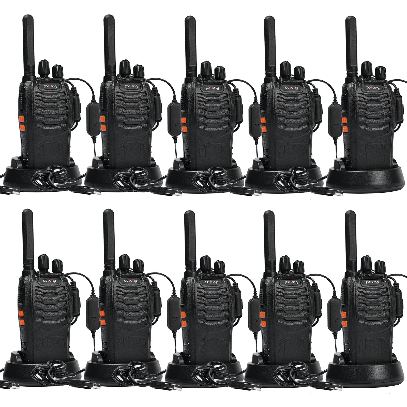 Walkie Talkie PMR446 License-Free Two-Way Radio, Pofung PT88E 16 Channels Professional Rechargeable Long-Range Walkie Talkies with USB Charging Station and Earpieces Black 10 Pack
