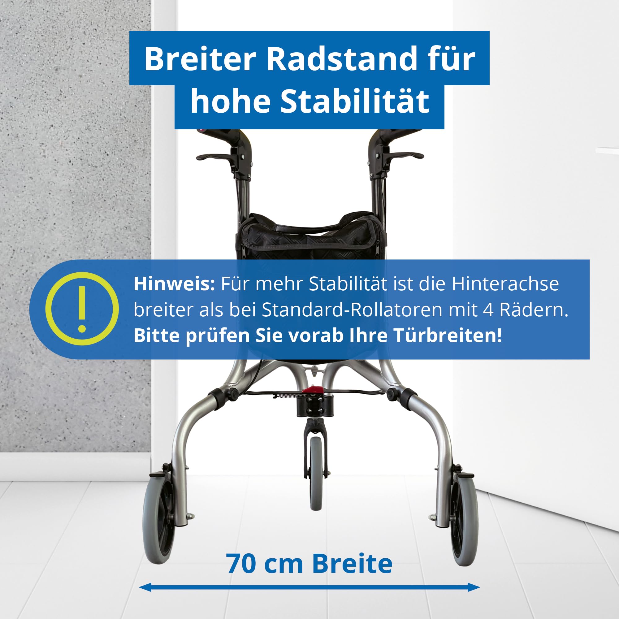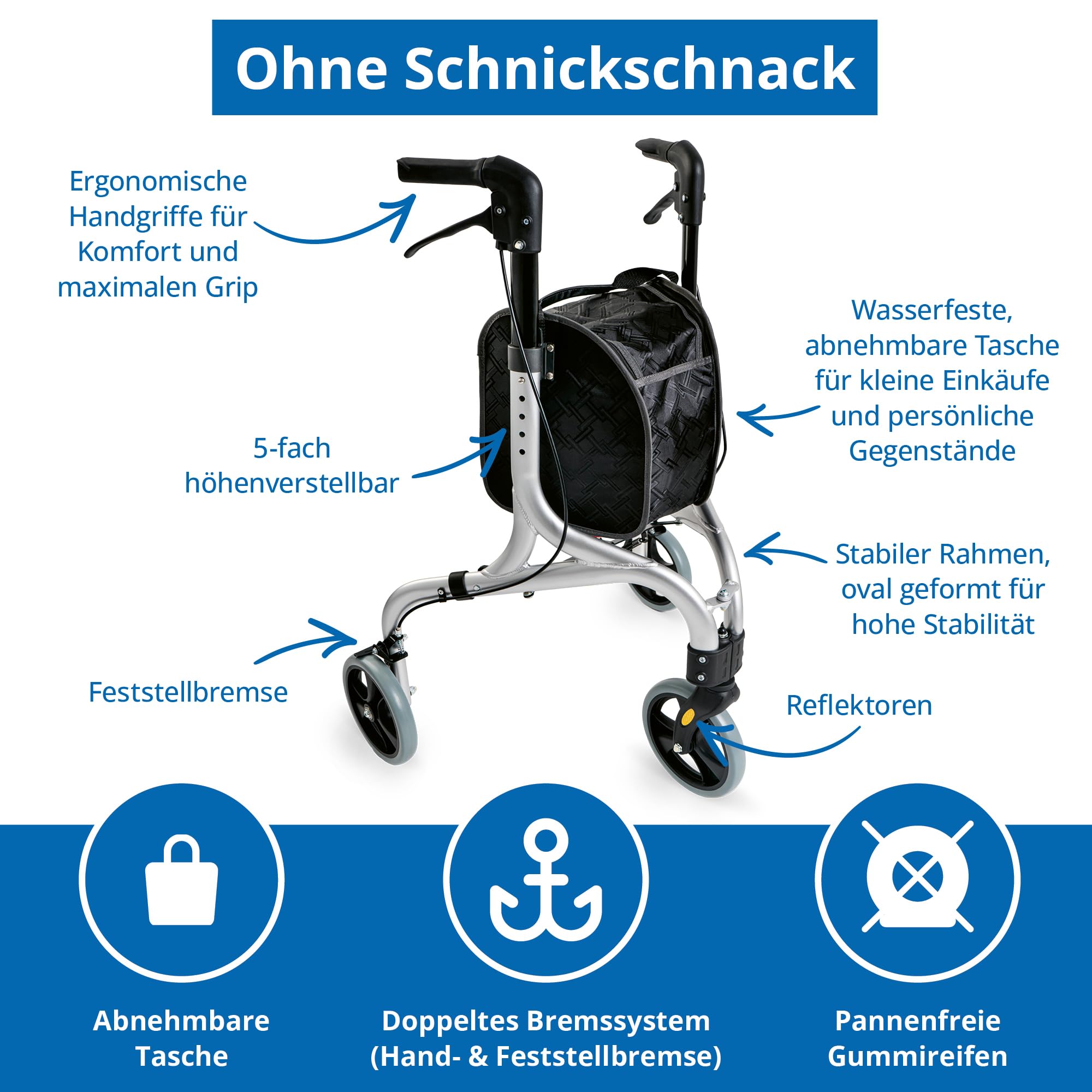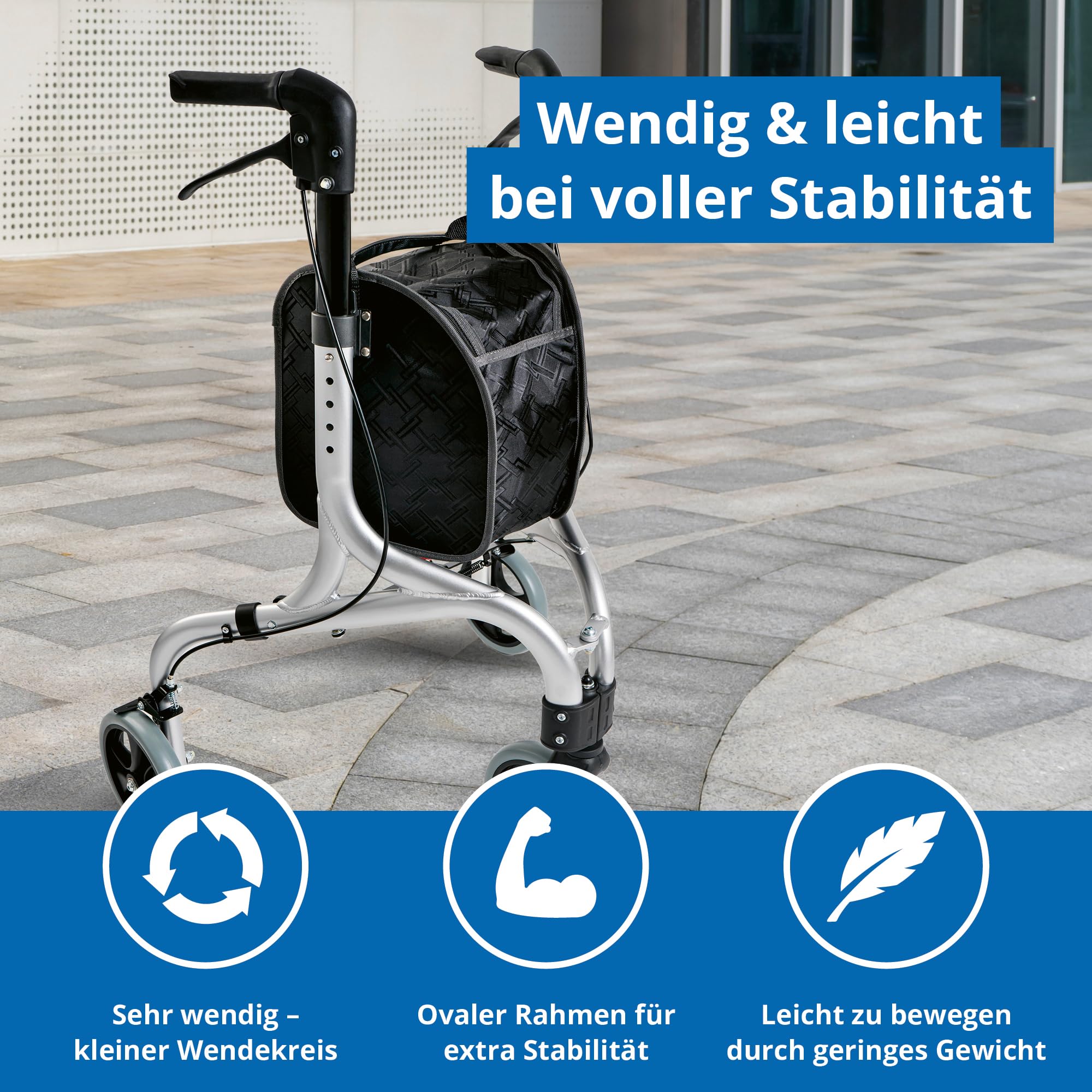 Weinberger aluminum rollator with 3 wheels, foldable, with removable bag, slim, lightweight and maneuverable, stable, only 4.2 kg, color: silver, model: 02217