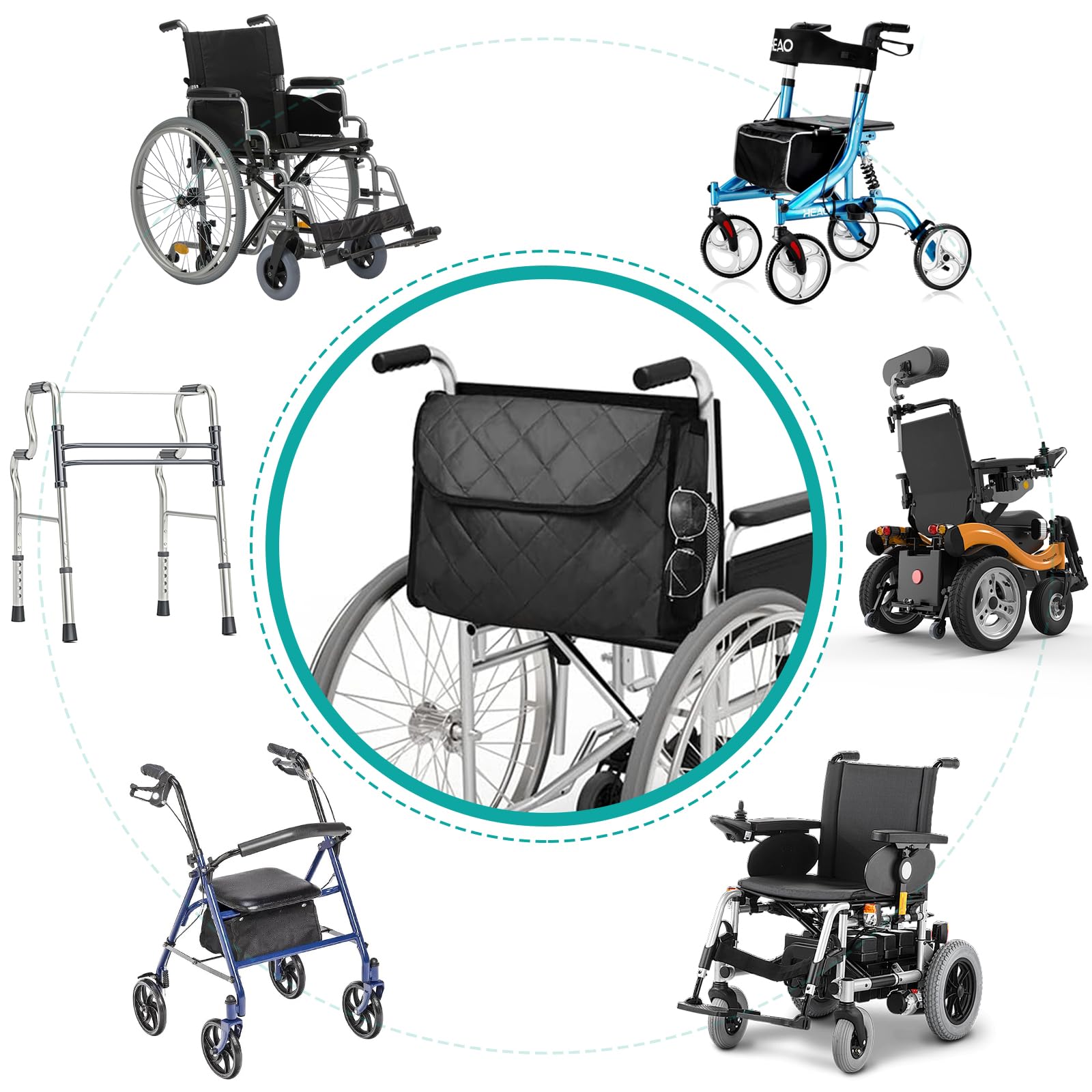 - 【Universal Wheelchair Bag】This wheelchair bag features adjustable straps that allow it to be securely attached to all standard wheelchairs, walkers, and transport chairs. Conveniently store and carry the items you need.