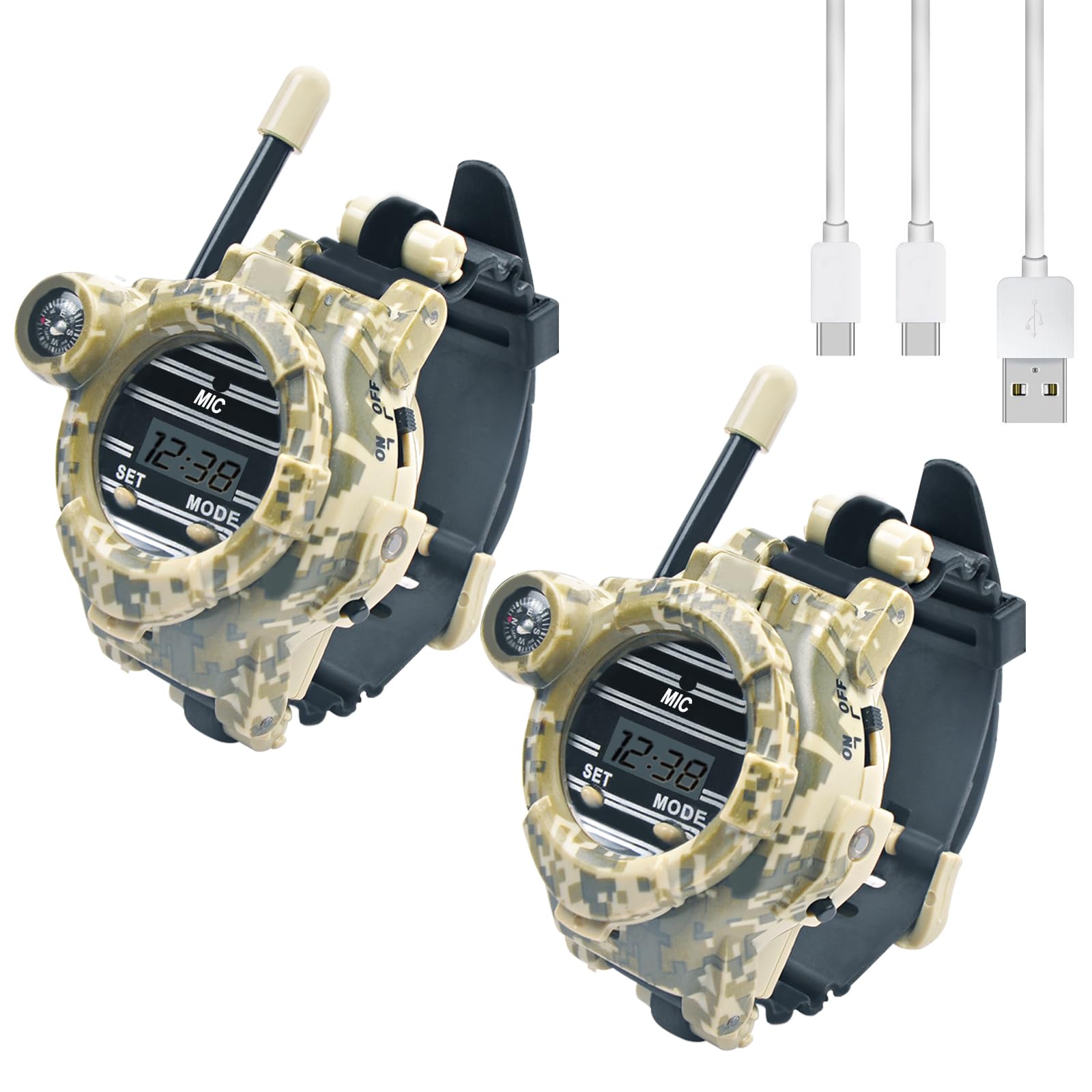 ydi Walkie Talkies for Kids, Rechargeable Watch Walkie Talkie with Flashlight, Camping Hiking Cycling Outdoor Toys, Gifts for Girls and Boys, 2 Packs
