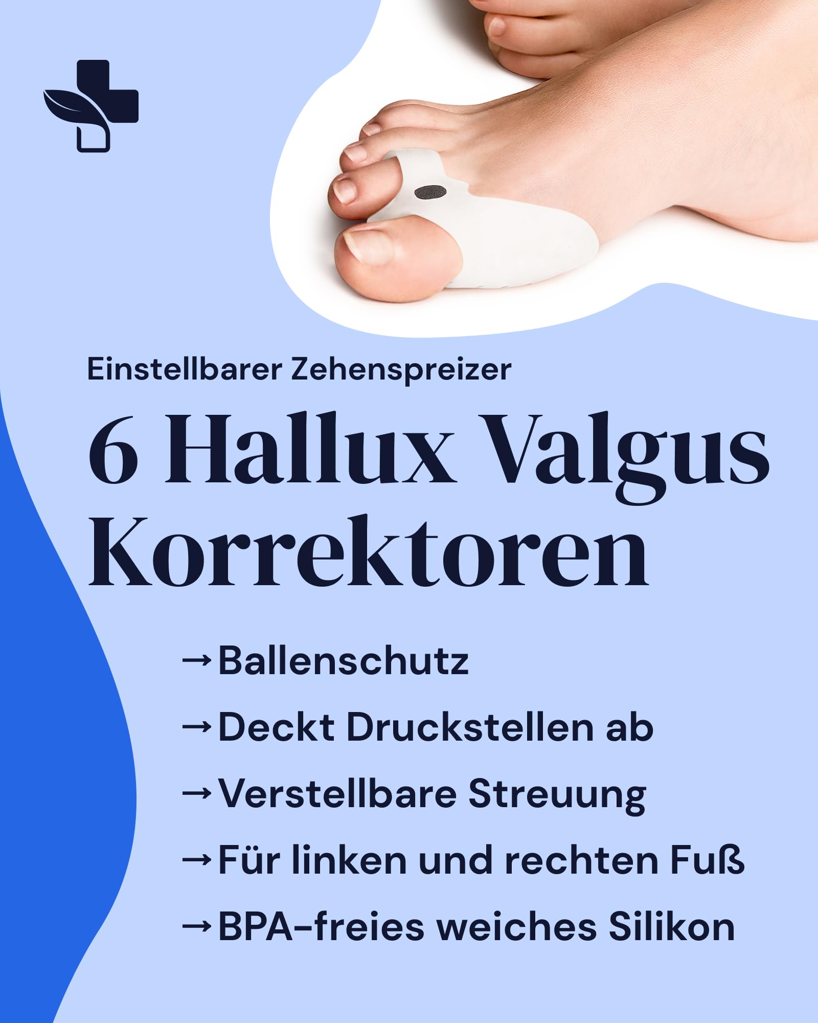 YOGAMEDIC 6-piece toe separator, hallux valgus correction set, toe protector - 0% BPA hallux gel splint toe correction, hammer toe pad ring - silicone gel toe separator for women and men, one-size-fits-all