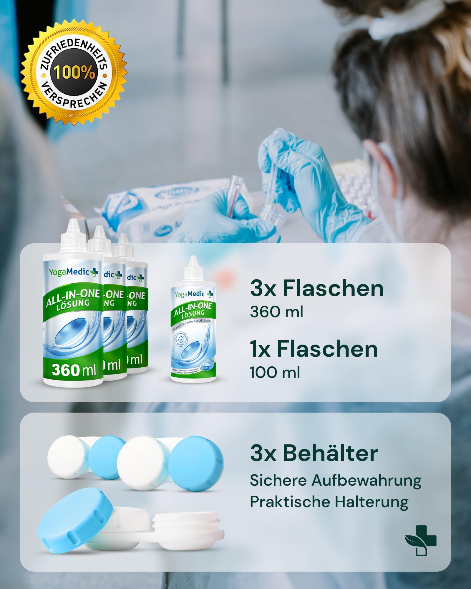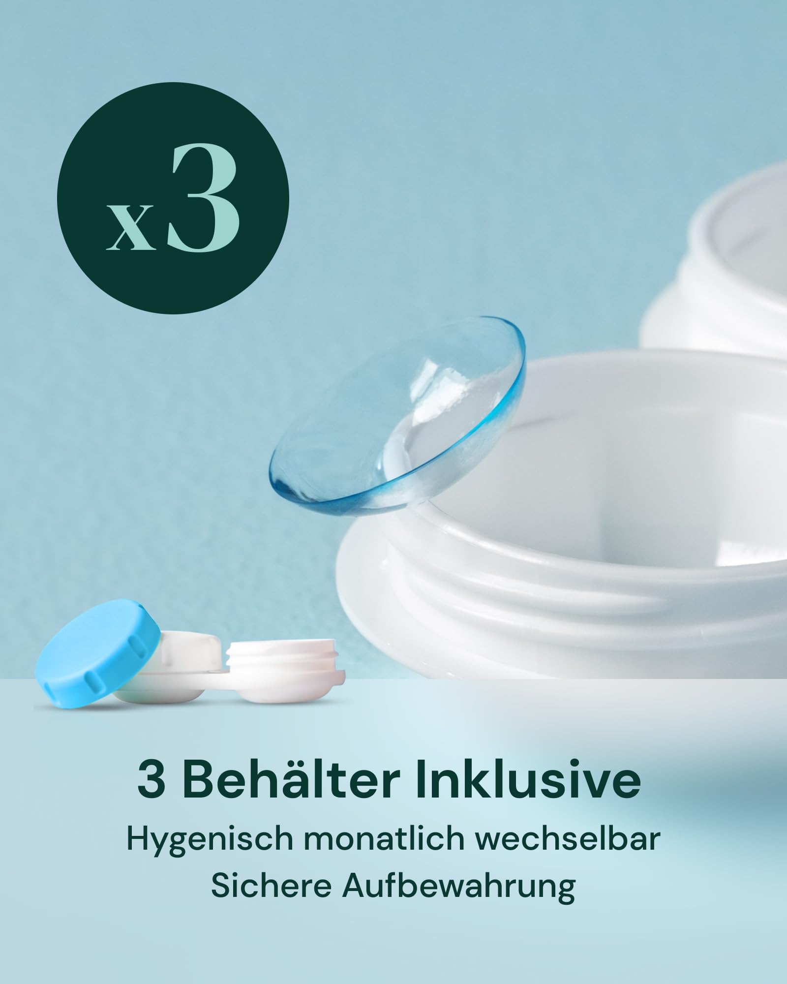 - Gentle care: Available in a practical set – 3 x 360 ml + 1 x 100 ml travel-sized contact lens solution for on the go – including 3 contact lens cases. Our contact lens care product prevents redness and dryness, even for sensitive eyes.