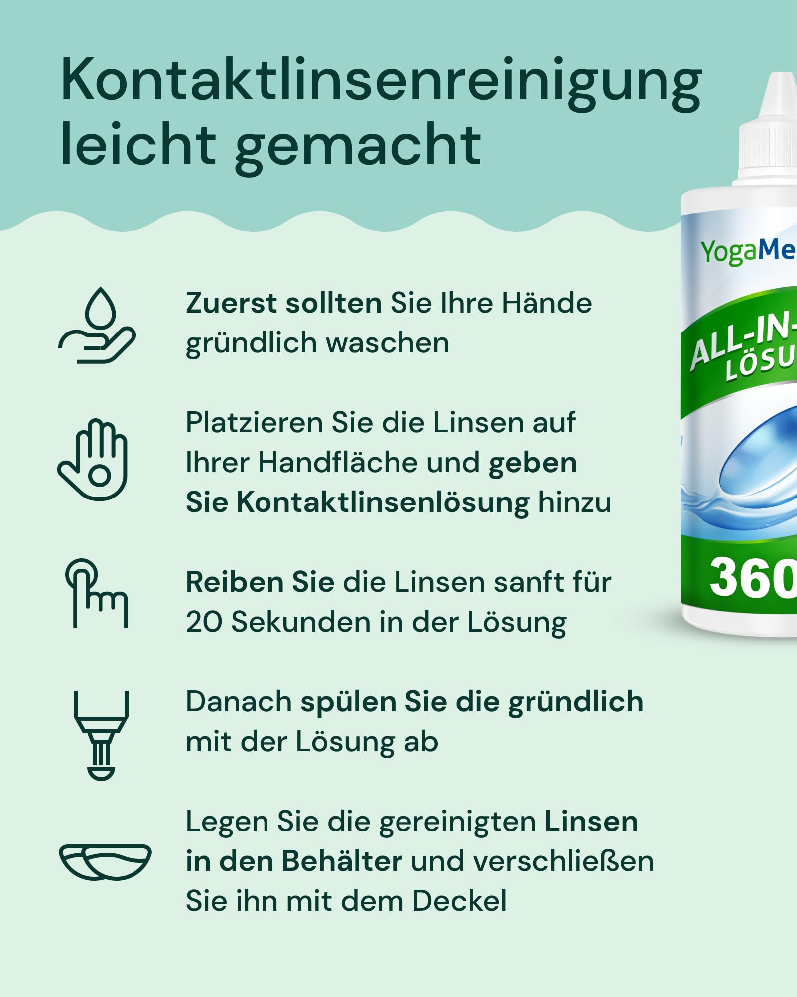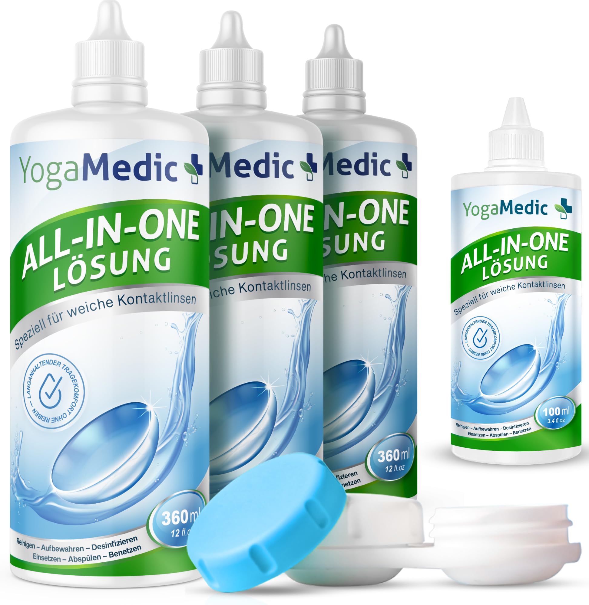 - All in one: YogaMedic All in One Solution for soft contact lenses effectively removes dirt, protein deposits and other residues that can accumulate on soft contact lenses throughout the day.